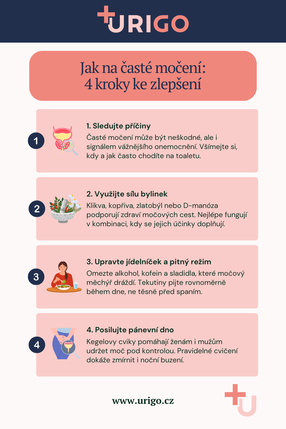 | Bylinky na močové cesty | Užívání bylinek jako je kopřiva, přeslička nebo zlatobýl může podpořit zdraví močových cest a zmírnit problémy s častým močením. |